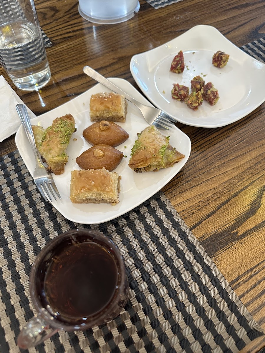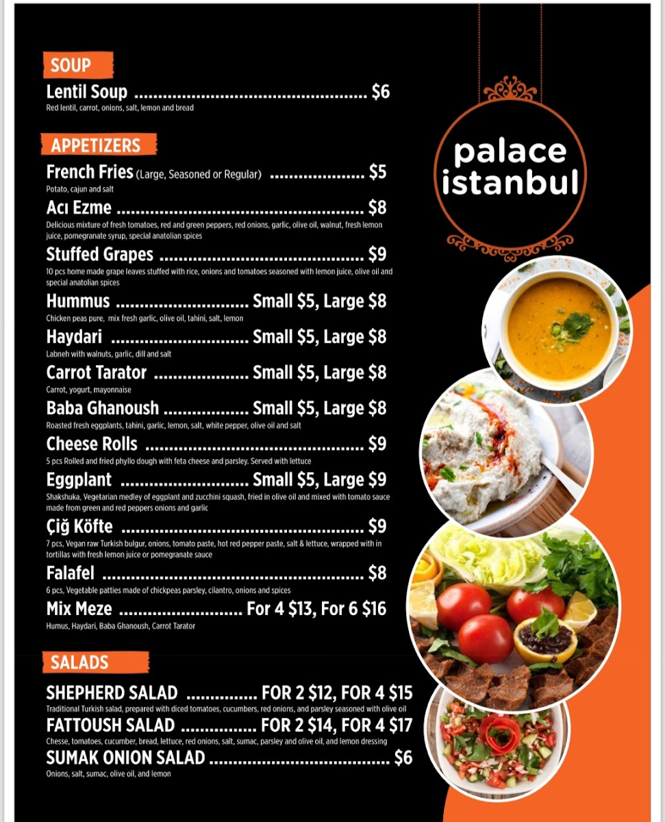 We had such a wonderful experience at The Palace Istanbul Kabab House. We came in with four adults and four kids and decided to order the mixed grill platter for six. When it arrived, it seriously felt like a feast. The table was filled with beautifully arranged meats, each one smelling better than the last. Surrounding the platter were generous portions of creamy hummus, smoky baba ghanoush, a bright and zesty salad, and the most addictive garlic sauce we’ve ever had. There was also lentil soup, which I thought was the least flavorful, and slightly on the blander side, but my toddler loved it. The salad was especially refreshing, with crisp vegetables and a light dressing that balanced the richness of the grilled meats perfectly. Every bite of the meal was packed with flavor. You could taste the spices and the care that went into the preparation. A couple of the meats were slightly overcooked, but not enough to take away from how satisfying and tasty everything was. The variety alone made the meal exciting, and there was plenty of food for everyone with leftovers to take home. We ended with some baklava that also came with it. I didn’t try it but my family thought it was decent. Our server Bilal was fantastic. He was warm, attentive, and made us feel truly welcome. His service really elevated the whole experience. What surprised us most was that the restaurant was nearly empty. With food this good, it deserves to be packed. We left full, happy, with my son already planning his bday dinner here. If you’re craving bold flavors and a generous, family-style meal, this spot is def a hidden gem waiting to be discovered!